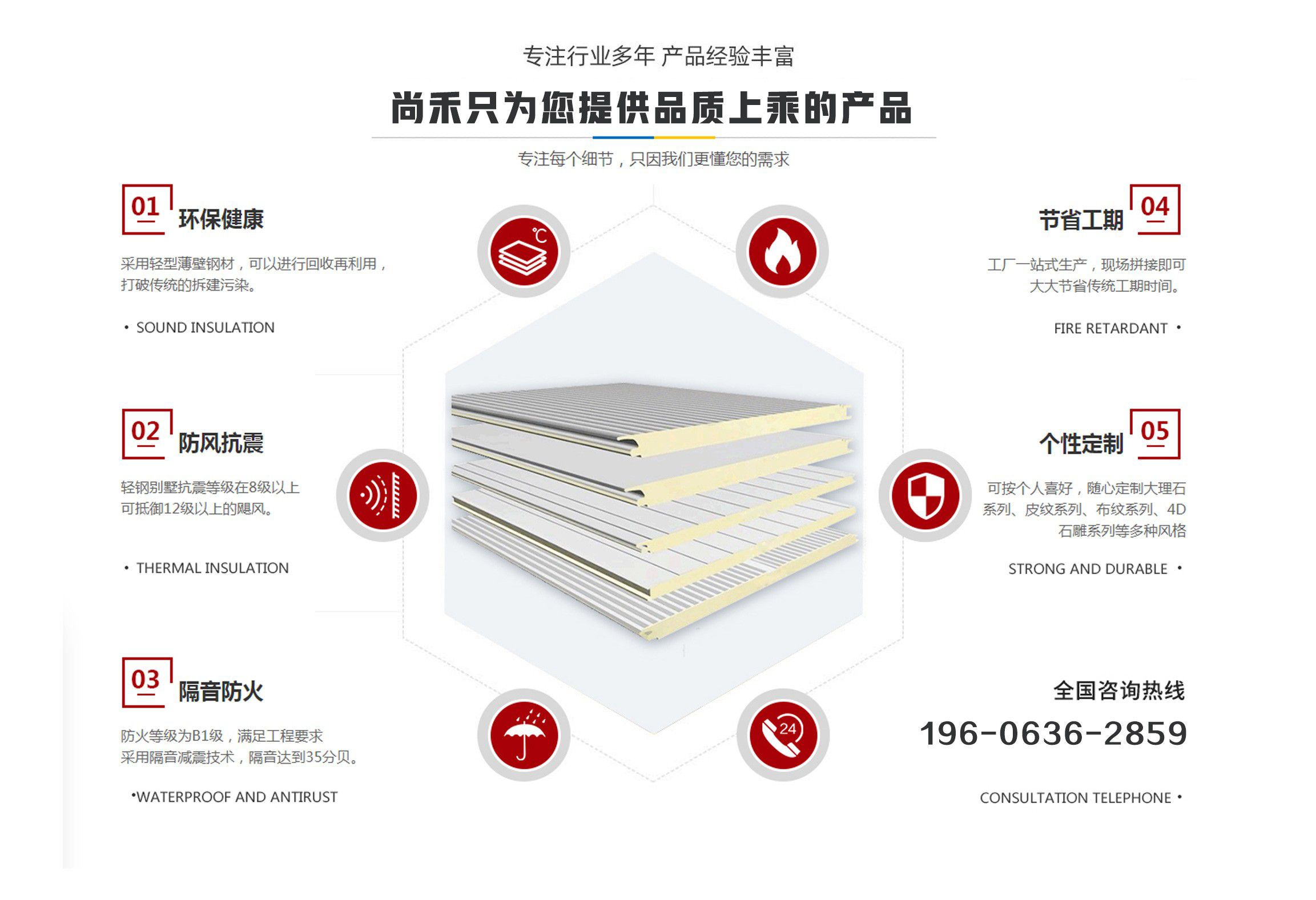 山東尚禾經(jīng)貿(mào)有限公司是集板材設(shè)計、研發(fā)、生產(chǎn)、施工、一體化的科技公司,并在同行業(yè)中率先通過了質(zhì)量、環(huán)境、安全管理體系認(rèn)證。公司2011年投入資金2000余萬元引進(jìn)世界先進(jìn)的聚氨酯節(jié)能板連續(xù)生產(chǎn)線、意大利進(jìn)口發(fā)泡系統(tǒng),采用六組份在線自動操作混合澆注技術(shù),在線一次性完成社會配料中心或工廠的配比混合工藝,并可以根據(jù)溫度在線自動調(diào)整,從而生產(chǎn)處與眾不同的高強(qiáng)度、節(jié)能型、綠色環(huán)保的聚氨酯夾芯板。(其使用年限高于同行業(yè)其他品牌5-10年) 公司主要經(jīng)營范圍包括聚氨酯夾芯板,PU夾芯板,冷庫板,潔凈板,聚氨酯冷庫板,冷庫保溫板的設(shè)計、生產(chǎn)、銷售、技術(shù)指導(dǎo)、安裝及一體、以及進(jìn)出口業(yè)務(wù),是中部六省最大的綠色節(jié)能建材生產(chǎn)基地。聚氨酯夾芯板年產(chǎn)200萬平方米、PU夾芯板、冷庫保溫板500萬平方米、鏈整產(chǎn)業(yè)綜合實(shí)力,開創(chuàng)了六省至中西部創(chuàng)新型中小名企總部基地,并將著力推進(jìn)中國中西部地區(qū)集成房屋住宅產(chǎn)業(yè)化發(fā)展進(jìn)程。 科技創(chuàng)新、節(jié)能典范。千萬間始終秉承“誠信、合作”的企業(yè)文化精髓,長期致力于鋼板材結(jié)構(gòu)節(jié)能建筑產(chǎn)業(yè),愿與社會各界攜手合作,共鑄綠色、環(huán)保美好未來。 產(chǎn)品具有良好的絕熱、阻燃、隔音、環(huán)保、耐久性能,可廣泛應(yīng)用于工業(yè)、商用建筑內(nèi)外墻、以及民用建筑外墻保溫、空調(diào)通風(fēng)系統(tǒng)、專用防火保溫門等領(lǐng)域。 我們始終秉承...